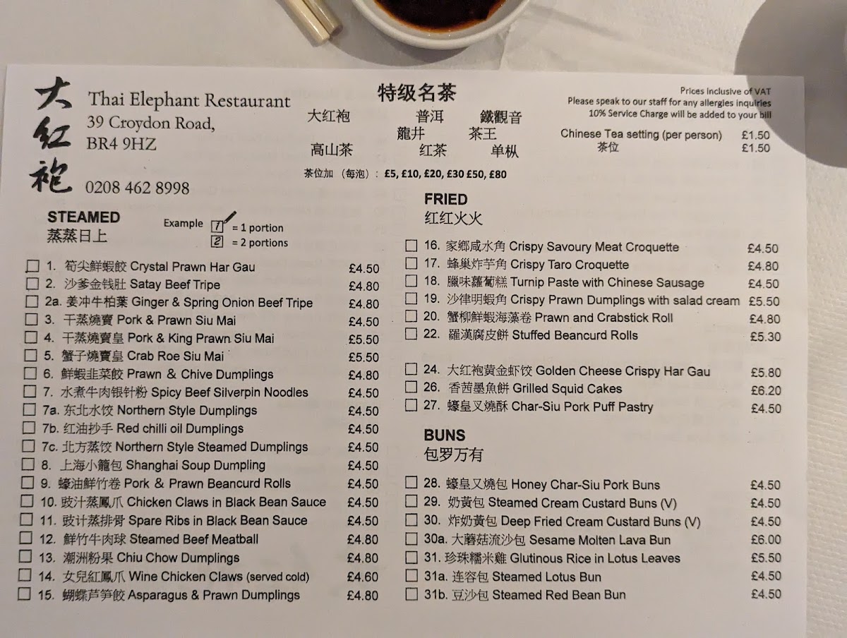 Tucked away on Croydon Road in West Wickham, the Thai Elephant Restaurant And Dim Sum (Da Hong Pao) Menu offers a rare fusion of Thai and Cantonese cuisine, creating an experience that is both surprising and memorable. This unique dual concept gives diners the chance to explore the vibrant spice-driven flavours of Thailand alongside the delicate craftsmanship of traditional dim sum-all under one roof.
